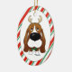 Grand ornement humoristique de Noël de Basset Hound de nez. Le basset est dans des andouillers et gui de se tenir dans sa bouche.