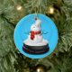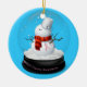 Ornement de Noël de conscience de cancer du sein. Accrochez sur l'arbre de Noël ou accrochez sur le mur comme décoration de Noël. Petit bonhomme de neige mignon portant un ruban rose pour le cancer du sein. Vous pouvez changer l'arrière - plan en choisissant le customize>edit>background. C'est un bleu lumineux.