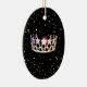 La frontière finale, la couronne sur un ornement de Noël montré dans une forme ovale avec un arrière - plan noir chic et des étoiles d'or de couronne et petites brillantes. Vous pouvez choisir un ornement formé différent, customiser cet article ou l'acheter comme montré.