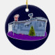 Cet ornement de Noël de déchets de remorque montre ma remorque de caravane résidentielle tout ornée pour les vacances.