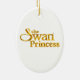Ornement ovale d'arbre de Noël comportant embrassant les caractères, la princesse Odette et la princesse animated Derek, de la princesse de cygne. Le dos de l'ornement a le logo de princesse de cygne.