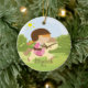 Personnalisez le petit ornement principal rouge mignon daté de Noël de fille de cavalier de horseback réglé sur un arrière - plan d'herbe et d'arbre. L'ornement mignon de cheval comporte la petite fille la plus douce montant son poney. Un cadeau de Noël de merveille sure à priser depuis de nombreuses années pour venir.