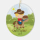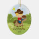 Personnalisez le petit ornement blond mignon daté de Noël de garçon de cavalier de horseback de cowboy réglé sur un arrière - plan d'herbe et d'arbre. L'ornement mignon de cheval comporte le petit garçon le plus doux montant son poney. Un cadeau de Noël de merveille sure à priser depuis de nombreuses années pour venir.