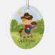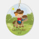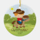 Personnalisez le petit ornement rouge mignon daté de Noël de garçon de cavalier de horseback de cowboy de cheveux réglé sur un arrière - plan d'herbe et d'arbre. L'ornement mignon de cheval comporte le petit garçon le plus doux montant son poney. Un cadeau de Noël de merveille sure à priser depuis de nombreuses années pour venir.