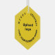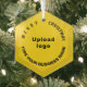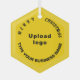 Joyeux Noël! Ornement en verre avec des textes de voeux de Noël Joyeux, votre nom d'entreprise ou de compagnie et logo. Les dessins sont des textes noirs en arrière - plan jaune et en forme d'hexagone. Ornement pour décorer le sapin de Noël dans votre magasin, magasin ou bureau. Ornement pour accueillir visuellement vos clients cette saison de vacances et pour annoncer votre entreprise ou promouvoir votre marque. Customisez-le et utilisez-le pour sensibiliser la marque. Veuillez vérifier l'apparence après avoir téléchargé le logo et tapé votre nom d'entreprise. Si l'apparence vous plaît, vous pouvez passer votre commande maintenant. Si vous avez besoin de redimensionner et déplacer le logo et les textes pour s'adapter à cet ornement ou à d'autres styles que vous choisirez, s'il vous plaît changer dans l'outil de conception. Vous pouvez également effectuer d'autres modifications selon vos préférences dans l'outil de conception, comme changer la couleur de l'ornement, la couleur de police et le style de police. Joyeux Noël! Je vous souhaite plus de ventes cette saison des Fêtes.