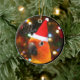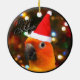 Ornement mignon de Sun Conure ! Le perroquet vert utilise un casquette rouge lumineux de Père Noël devant un arrière - plan coloré d'hiver. Amusement pour l'arbre de Noël de l'amant d'oiseau cette saison des vacances.