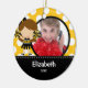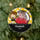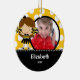 Pom-pom girl noir et jaune mignon daté encourageant l'ornement de Noël de photo. Un cadeau de Noël de merveille sure à priser depuis de nombreuses années pour venir.