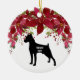 Silhouette fine Miniature Pinscher avec Poinsettias aquarelle. Ajoutez le nom de votre animal de compagnie et l'année (ou les années de naissance/décès pour un ornement commémoratif). Autres races disponibles dans notre boutique. Veuillez contacter le concepteur à info@lemontreecards.com pour demander une race qui n'est pas indiquée dans notre collection.