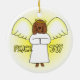 Un ornement de poseur irlandais d'ange, se perfectionnent pour votre arbre de Noël. Le chien de bande dessinée a de grandes ailes pelucheuses et un halo jaune, et écrite de chaque côté de lui est la "paix" et la "joie." Bel ornement de chien pour des amants d'animal familier.