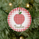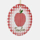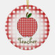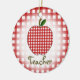 Un ornement de Noël pour des professeurs comportant un arrière - plan de guingan rouge noir. Pomme assortie au centre. Le texte sous la pomme indique le "professeur."