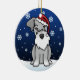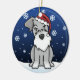 Ornement mignon de Noël de Schnauzer, dessiné dans la bande dessinée de kawaii ! Cette race adorable de chien utilise un casquette rouge de Père Noël, et les flocons de neige tombent tout autour de lui. Absolument chéri, parfait pour l'arbre de Noël de l'amoureux des chiens !