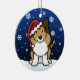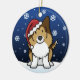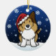 Ornement mignon de Noël de Sheltie de sable, dessiné dans la bande dessinée de kawaii ! Cette race adorable de chien utilise un casquette rouge de Père Noël, et les flocons de neige tombent tout autour de lui. Absolument chéri, parfait pour l'arbre de Noël de l'amoureux des chiens !