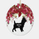 Silhouette douce de Yorkie avec des poinsettias d'aquarelle. Ajoutez votre nom d'animal familier et l'année (ou des années de naissance/mort pour un ornement commémoratif). Autre multiplie disponible dans notre magasin. Veuillez contacter le concepteur chez info@lemontreecards.com pour demander une race non montrée dans notre collection.