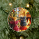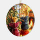 Un mignon petit couple décorant leur sapin de Noël dans leur cottage cosy est la scène de cet adorable ornement de Noël.