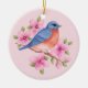 Cet ornement en céramique a ma peinture d'un oiseau bleu sur une branche avec les fleurs roses. L'ornement est de 2 5/8" et vient avec un ruban. Vous pouvez ajouter le texte sur de nouveau à personnalisez.