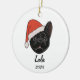 Célébrez la toute première saison des fêtes de votre ami en fureur avec notre adorable ornement de Noël Black Frenchie Santa Hat. Ce joli ornement présente une illustration charmante d'un Bulldog français noir portant un chapeau de Père Noël, avec l'ajout spécial de "Mon premier Noël" sur un côté. Ce qui le rend encore plus unique est l'option de customiser l'autre côté avec le nom de votre animal de compagnie et l'année, en créant un gardien chéri pour commémorer cette étape spéciale.
