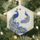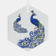 Cet ornement de Noël est présenté en forme d'hexagone de verre avec une couleur arrière - plan blanche avec une belle empreinte de paons. Customisez cet objet ou achetez tel quel.