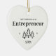 Premier Noël en tant qu'entrepreneur, ornement à cœur. Élégants ornements de vacances en porcelaine céramique blanche avec lettrage noir. Avec des arbres de Noël et des étoiles.