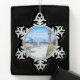 C'est le Monument Fille Puzzle sur Roosevelt Island, NYC en l'honneur de Nellie Bly sur un ornement en flocon de neige d'Adventures for Anyone!