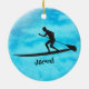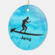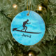 Paddleboard Ornement personnalisé Noël 20XX. Un paddle pose sur un plateau contre un arrière - plan d'eau bleue. Tout le texte personnalisable, avant et arrière !