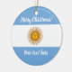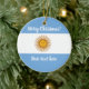 Ornement de photo d'arbre de Noël de drapeau de l'Argentine. Joyeuses décorations faites sur commande de vacances de Noël dans en rond ou forme de coeur. Conception personnalisée de drapeau de pays. Le décor de Noël de nouveauté pour des amis, famille, enfants, travailleur de Co, employé, patron, enfants, épousant des couples, l'épouse nouvellement, maman et papa, grands-parents, parents, le bébé etc. ajoutent la salutation et la photo de votre propre saison sur le dos sur option. Modèle élégant de typographie de manuscrit. Ficelle scintillante d'or incluse. Créez votre propre souvenir pour le ęr Noël ensemble ou d'autres occasions.