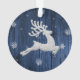 Ajoutez une touche de fantaisie à votre sapin de Noël avec un ornement de rennes de Noël bleu rustique. L'aménagement orné d'un arrière - plan en bois bleu rustique avec un renne de Noël orné de flocons de neige en chute. Autres cadeaux et objets de vacances disponibles avec ce design aussi.