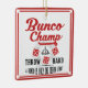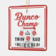 Décorez votre arbre de vacances avec le votre possèdent très l'ornement de vacances de Bunco. Le style de conception est vintage qu'inclue une cloche de Bunco et une matrice de Bunco dans la conception. Le texte lit : Le champion de Bunco, jettent dur, un Bunco est seulement un jet loin. Conception de Bunco d'amusement.