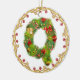 ornement décoré d'un monogramme initial de Noël de Q - cercle. Cette décoration exquise d'arbre de Noël de la lettre Q donnera à votre Noël un contact traditionnel avec une sensation personnalisée moderne. A conçu pour ressembler à un arbre de sapin couvert de présents et des cadeaux cette lettre a sur un ornement circulaire est entourés par un cadre d'or avec les baies rouges. Le haut de gamme et tendent dessus ceci est un luxe abordable pour vous les besoins de décor de vacances. Le double a dégrossi pour l'impact supplémentaire ce vert et l'image rouge sur un arrière - plan de blanc neigeux est un favori avec des entreprises également. Alphabet en entier disponible.