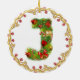 ornement décoré d'un monogramme initial de Noël de J - cercle. Cette décoration exquise d'arbre de Noël de la lettre J donnera à votre Noël un contact traditionnel avec une sensation personnalisée moderne. A conçu pour ressembler à un arbre de sapin couvert de présents et des cadeaux cette lettre a sur un ornement circulaire est entourés par un cadre d'or avec les baies rouges. Le haut de gamme et tendent dessus ceci est un luxe abordable pour vous les besoins de décor de vacances. Le double a dégrossi pour l'impact supplémentaire ce vert et l'image rouge sur un arrière - plan de blanc neigeux est un favori avec des entreprises également. Alphabet en entier disponible.