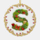 ornement décoré d'un monogramme initial de Noël de S - cercle. Cette décoration exquise d'arbre de Noël de la lettre S donnera à votre Noël un contact traditionnel avec une sensation personnalisée moderne. A conçu pour ressembler à un arbre de sapin couvert de présents et des cadeaux cette lettre a sur un ornement circulaire est entourés par un cadre d'or avec les baies rouges. Le haut de gamme et tendent dessus ceci est un luxe abordable pour vous les besoins de décor de vacances. Le double a dégrossi pour l'impact supplémentaire ce vert et l'image rouge sur un arrière - plan de blanc neigeux est un favori avec des entreprises également. Alphabet en entier disponible.