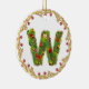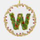 ornement décoré d'un monogramme initial de Noël de W - cercle. Cette décoration exquise d'arbre de Noël de la lettre W donnera à votre Noël un contact traditionnel avec une sensation personnalisée moderne. A conçu pour ressembler à un arbre de sapin couvert de présents et des cadeaux cette lettre a sur un ornement circulaire est entourés par un cadre d'or avec les baies rouges. Le haut de gamme et tendent dessus ceci est un luxe abordable pour vous les besoins de décor de vacances. Le double a dégrossi pour l'impact supplémentaire ce vert et l'image rouge sur un arrière - plan de blanc neigeux est un favori avec des entreprises également. Alphabet en entier disponible.