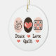 Le symbole de paix, le coeur et le carré piquant de tissu avec des coeurs et des fleurs dans le brun rose et foncé sur les T-shirts d'édredon, l'habillement, l'habillement et plus de marchandises font un cadeau mignon pour le quilter avide.