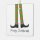 Joyeux Noël! Un ornement en céramique avec les jambes des elfes de Noël, version costume chevron. Customisez l'ornement avec votre propre texte parmi d'autres options.