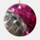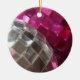 Une collection de baubles de Noël roses et argentés scintillants. Ornement avec un design personnalisable rose, argent, noir et blanc pour vous permettre de personnaliser avec votre propre texte, images et idées. Créé à l'aide d'une photographie originale et de techniques numériques de Jess Perry.