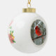 Cardinal rouge rayonnant se distingue sur un joli ornement de Noël en céramique, avec cloche, poinsettia ou arbre de Noël décorant le dos. Belle décoration originale pour la saison des fêtes !