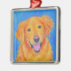 Cet ornement présente un joyeux récupérateur d'or. J'ai créé le portrait original en aquarelle, encre et crayon couleur sur papier aquarelle.