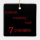 Ce ornement énumère les 7 principes de Kwanzaa : 4 sur le devant et 3 sur le dos. Kwanzaa est une fête cool qui a un sens profond, qui suscite la réflexion et qui est célébrée par certains aux Etats-Unis. Profite de Kwanzaa. Personnalisable . Travail original; © Sharon Lee Hudson. Tous droits réservés.