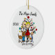 Assez autour de l'ornement en céramique de vacances de Noël de souvenir comporte un chiffre couple de bâton attendant un bébé et un petit garçon d'enfant en bas âge se tenant devant un arbre de Noël décoré, un chien brun, le chat brun, et le texte qui nous lit "prévoient !".  Vous pouvez personnaliser ce chiffre mignon ornement de bâton en ajoutant vos noms et année en cours !
