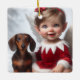 Ornement En Céramique Baby Christmas Elf and Dachshund Card