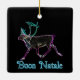 Un dessin lumineux et néon d'un caribou, aussi connu sous le nom de renne. "Buon Natale" apparaît en bleu et blanc éclatant. Inspiré par les aurores boréales.