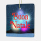 Une fractale aléatoire multicolore qui ressemble à des motifs de glace Jack Frost sur une vitre; superposée sur un arrière - plan hivernal de nuit. . Les taches de couleur brillantes, éléments de l'image fractale d'origine, sont juste un joli plus. Le texte italien "Buon Natale" apparaît en rouge. Ces motifs sur vos fenêtres pendant l'hiver apparaissent comme des cristallisations de vapeur d'eau. Les motifs sont causés par de légers changements de température de l'air, mais d'autres facteurs, liés à la formation de neige et d'autres formes de précipitations gelées, contribuent également à des variations de conception. Ils commencent souvent lorsqu'un film d'humidité condensée est gelé par une bouffée d'air froid, et le verre obtient une mince feuille de glace. Peut-être qu'un autre film d'humidité se forme et se déverse, coupant des fossés et de minuscules ruisseaux à travers la glace sous-jacente, tandis qu'une autre bouffée d'air froid gèle cette humidité. De nouvelles molécules de vapeur congelées peuvent ajouter des cristaux de glace microscopiques. Le processus de congélation et de fonte se répète encore et encore. Petit à petit, les conditions météorologiques subtiles laissent filtrer les vitres avec des motifs. Comme les flocons de neige, le gel a besoin d'un noyau autour duquel se former. Des cristaux de glace se forment sur la poussière, les petites bosses et les imperfections dans une vitre, ou la texture des plantes. Puis le gel se développe à mesure que de plus en plus de cristaux de glace se forment sur ceux qui ont commencé. Il peut faire de la plumes fantaisie ou des motifs pointus. En revanche, lorsque la vapeur d'eau se condense en gouttelettes d'eau sur une vitre froide et que ces gouttelettes se figent lentement, la glace a un aspect différent, comme le montre la photo de gros plan des gouttelettes de condensation congelées. Les grandes formes de bulles sur la photo sont des gouttelettes de condensation gelées, et les nombreuses petites lignes à leur surface sont des fissures qui se forment alors que la glace gelait et s'étendait.