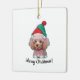 Ornement En Céramique Caniche mignon avec Casquette de Noël