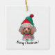 Vue frontale d'un mignon caniche brun avec un casquette de Noël rouge; sur le devant de l'ornement sont les mots "Joyeux Noël!". L'image ainsi que le texte sont des espaces réservés - vous pouvez facilement remplacer l'image par une image de votre propre animal de compagnie, et vous pouvez aussi facilement changer les mots. Le design a été créé à l'aide de l'IA. Un cadeau idéal pour toute personne qui aime les canicules ou qui veut donner l'ornement comme un cadeau à un ami amoureux des canicules.