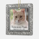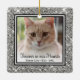 Ce magnifique ornement photo en mémoire d'un chat avec un bord à paillettes argentées, les mots "À jamais dans nos cœurs", le nom de votre chat et ses années de vie sera magnifique sur votre arbre. Vous le chérirez tout autant que vos souvenirs de votre chat bien-aimé qui est décédé.
