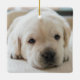 Photo de fermeture d'un chiot labrador fatigué de 2 semaines couché sur un tapis blanc et regardant la caméra