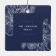 Un décor de vacances moderne et élégant qui encadre votre photo carré préférée dans un cadre magnifiquement détaillé avec des pics de pin, des feuilles d'hiver, de l'anis étoilé et des tranches d'agrumes sur un arrière - plan bleu marine riche. Personnalisez l'arrière de cet unique ornement photo de Noël avec votre nom de famille.
