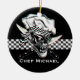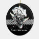 Célébrez les vacances avec votre passion féroce pour faire cuire, avec cet ornement personnalisé de crâne de chef, en comportant un crâne frais et des couteaux croisés devant un panneau checkered noir et blanc. La personnalisation vous permet d'ajouter votre nom ou texte de votre choix. La couleur d'arrière - plan peut être changée en votre aimer aussi bien. Perfectionnez pour le chef professionnel, chef principal, chef sous, chef personnel, le chef veulent - soyez, ou n'importe qui avec une passion féroce pour la cuisson ! Visitez www.zazzle.com/thechefshoppe pour voir plus de crânes orientés culinaires frais !