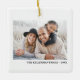Black Photo Collage Christmas Ornament. This custom ornament features a sleek black design with a photo on each side, giving you space to showcase two special memories. Below each photo, there’s room to include the family name, date, or any custom line of text for a personal touch. The simple black background keeps the look modern and timeless. Perfect as a thoughtful gift for family, friends, or yourself, this ornament adds a meaningful and stylish touch to the holiday season.