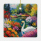 Ornement En Céramique Cygne dans un lac entouré de fleurs