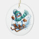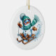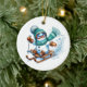 Cet ornement de Noël en céramique est présenté avec un joli imprimé d'art de bonhomme de neige en forme de fête. Customisez cet objet avec ce modèle ou achetez comme indiqué.